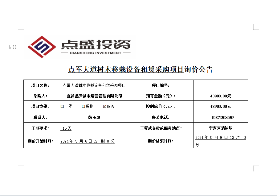 發(fā)布時間:2024/5/6 來源:宜昌點盛投資開發(fā)有限公司 訪問:234